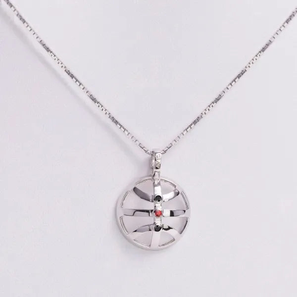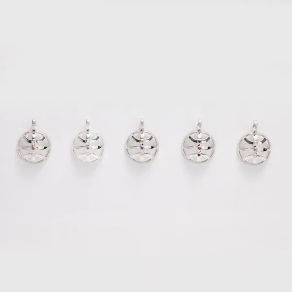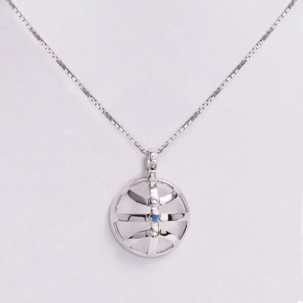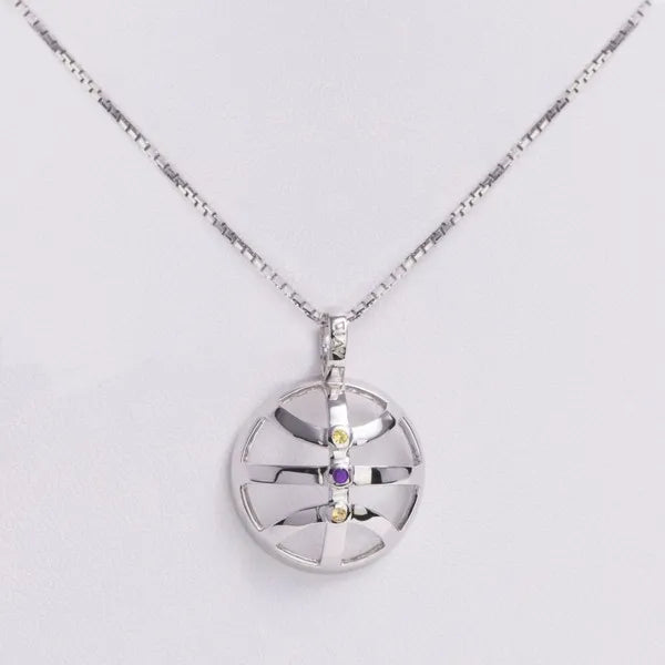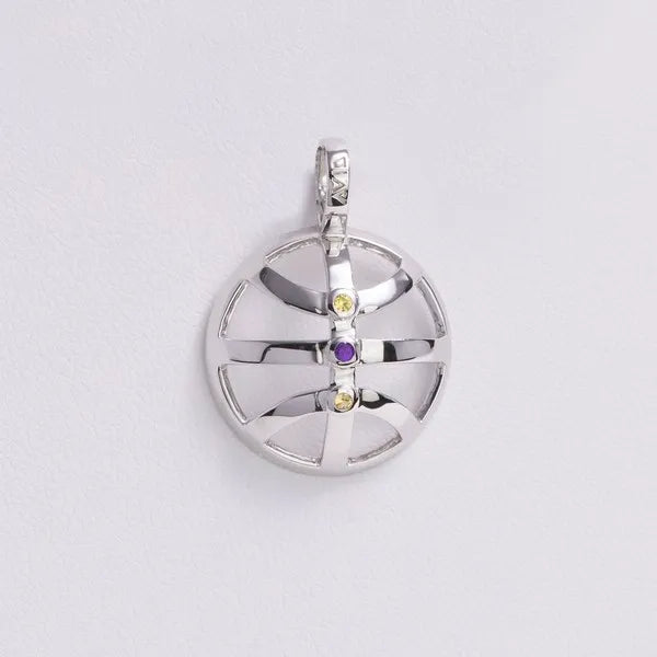 AVID’s Courtside Elegance Pendant – designed with an openwork basketball style. The high-polished rhodium-plated sterling silver basketball grooves accented by three vertical bezel-set gemstones.