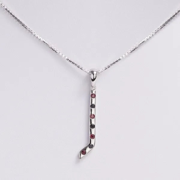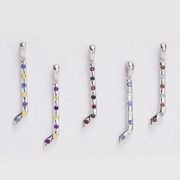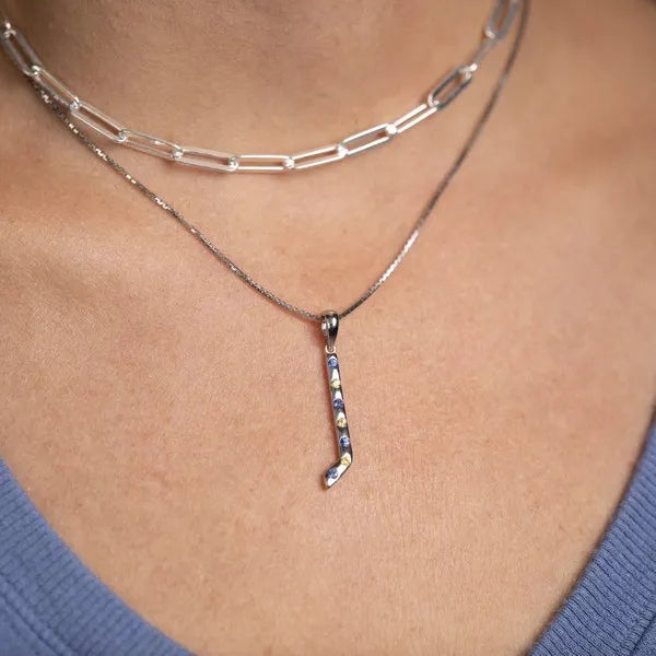 AVID’s Puck Perfection Pendant – a drop-style piece with flush-set colored gemstones in rhodium-plated sterling silver.