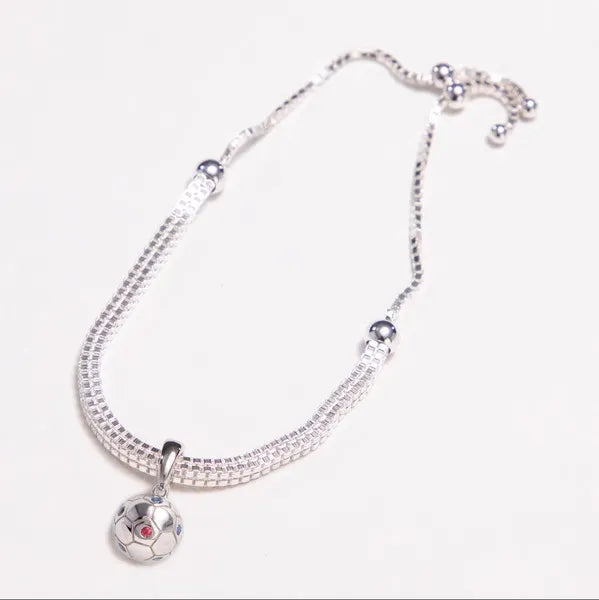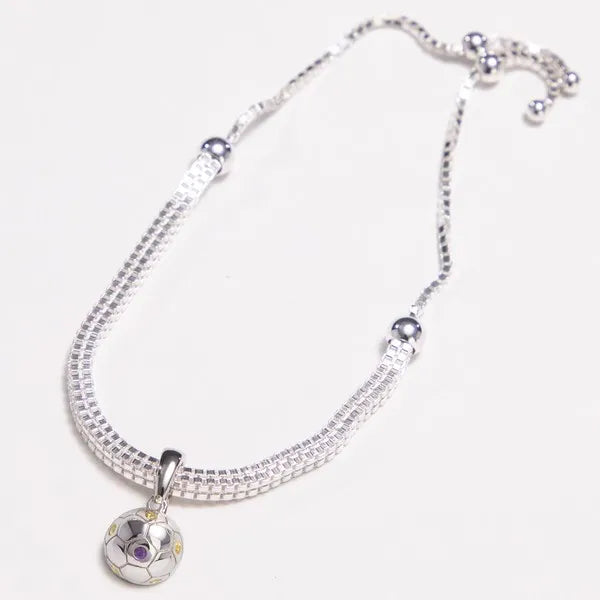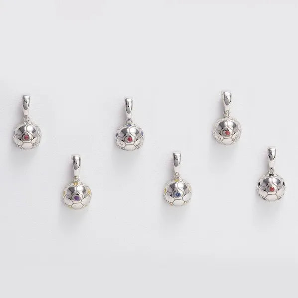 Soccer Ball Jewelry by AVID is crafted in rhodium-plated sterling silver and flush-set colored gemstones. The enhancer bail opens and closes so it can attach securely to any chain or bracelet.