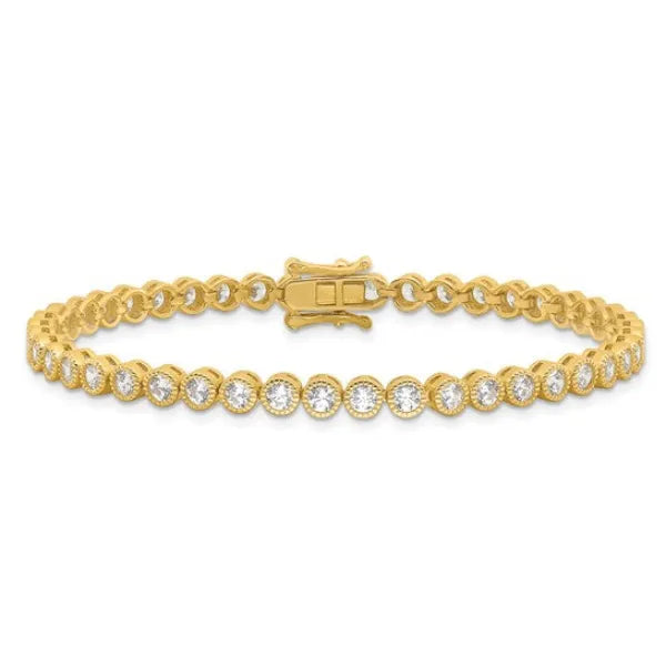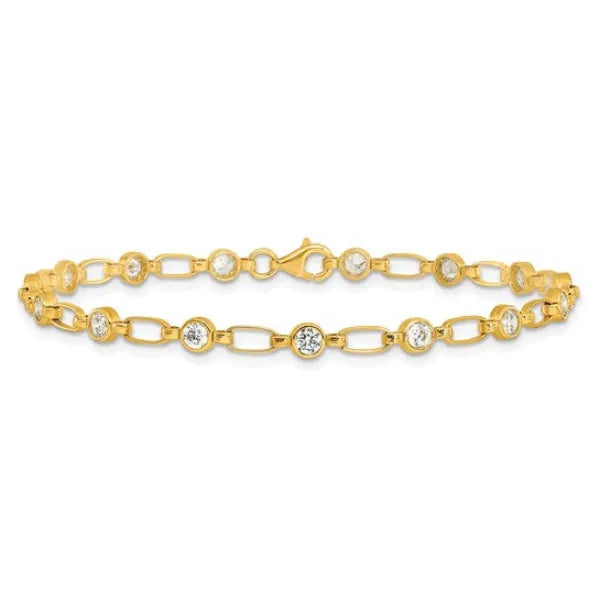Sterling Silver Gold-tone Bezel CZ 7.5" Bracelet