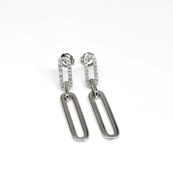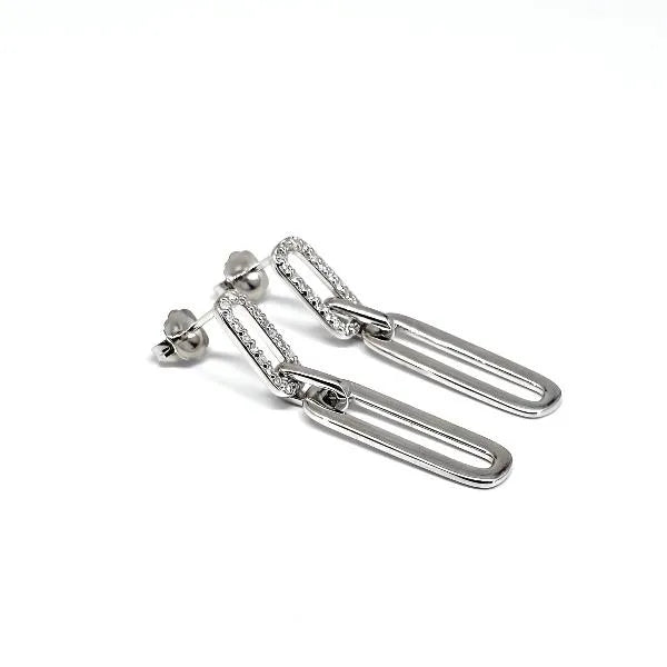 Diamond Paperclip Dangle Earrings - Sterling Silver Rhodium-Plated