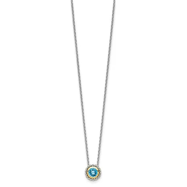 Shey Couture Sterling Silver with 14K Accent 18" Antiqued Round Light Swiss Blue Topaz Necklace