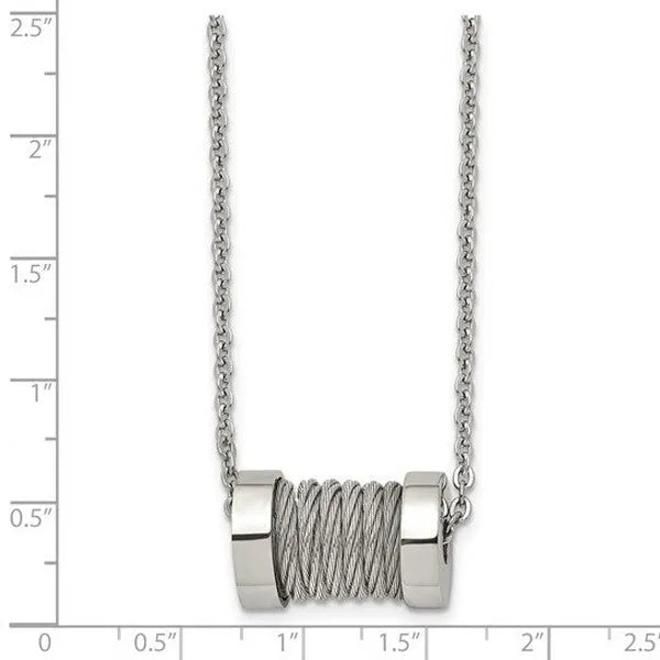 Stainless Steel Brushed and Polished Wire Barrel - 24" Necklace