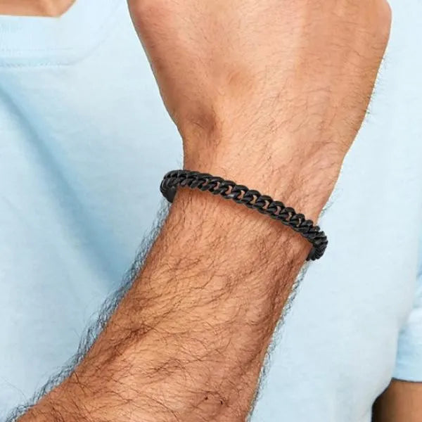 Stainless Steel Polished 8mm Black IP-plated 8.5" Curb Link Bracelet