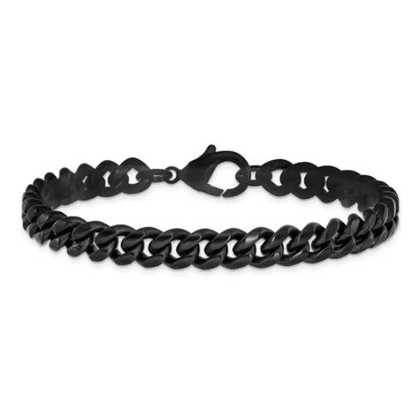 Stainless Steel Polished 8mm Black IP-plated 8.5" Curb Link Bracelet