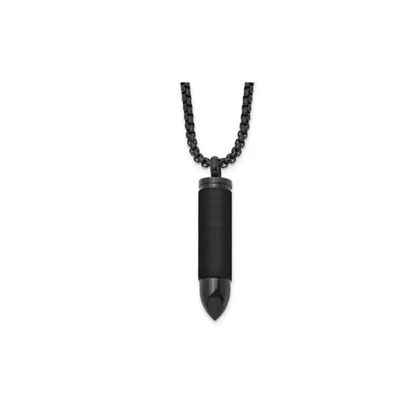 Chisel Stainless Steel Brushed and Polished Black IP-plated Bullet Capsule Pendant - 22" Box Chain Necklace