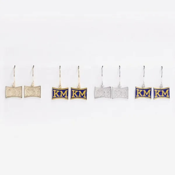 Matching KMHS logos flashing the blue and yellow dangling from ball dot French earring hooks. The same 4-step enameling process is used to ensure lasting durability and quality, so the earrings last from Freshman to Senior year and beyond.