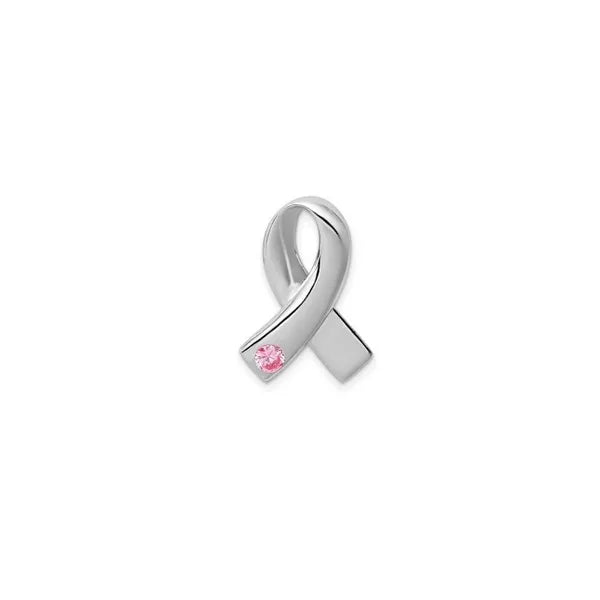 Sterling Silver Rhodium-Plated Pink CZ Awareness Ribbon Necklace