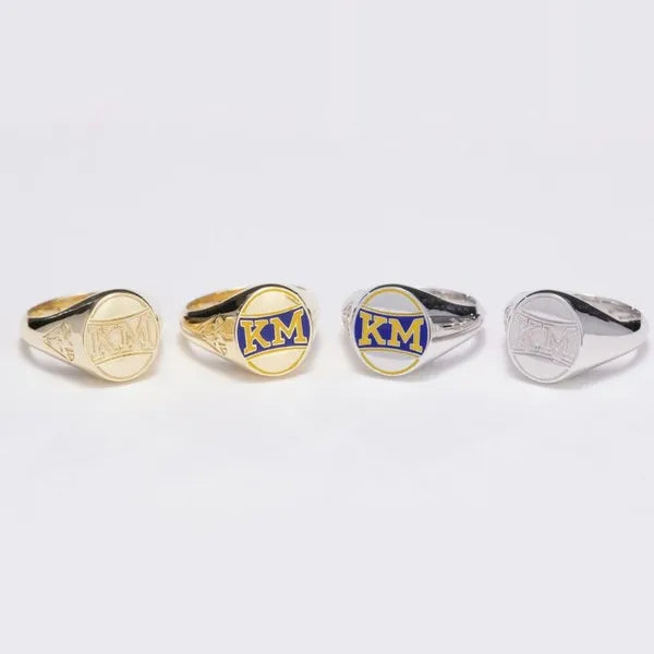 Designed to combine traditional school rings and fashion creates the original KMHS Ring. Classic statement ring with subtle style.  The sterling silver is tarnish-resistant due to rhodium plating, ensuring the quality of your ring lasts from Freshman to Senior year and beyond.