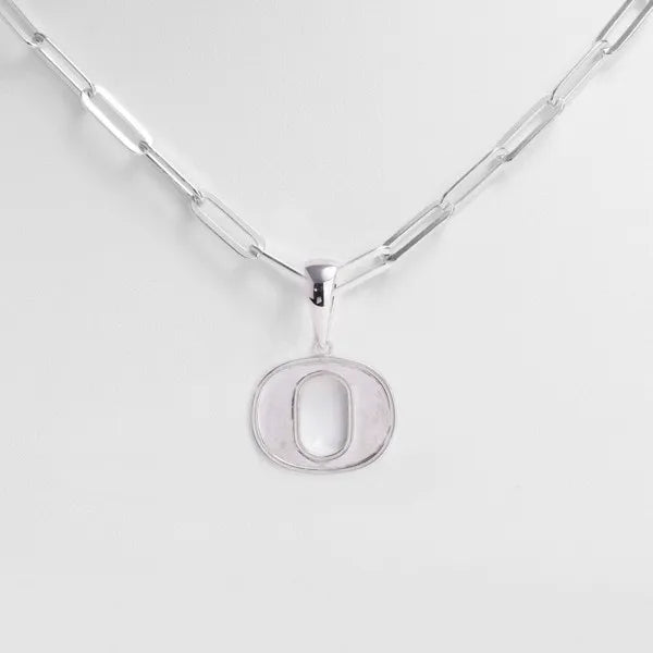 Statement piece of the “O” jewelry line titled “The Senior” in sterling silver. The rhodium-plating ensures the durability and quality of this piece lasts from Freshman to Senior year and beyond.