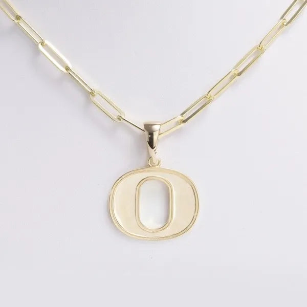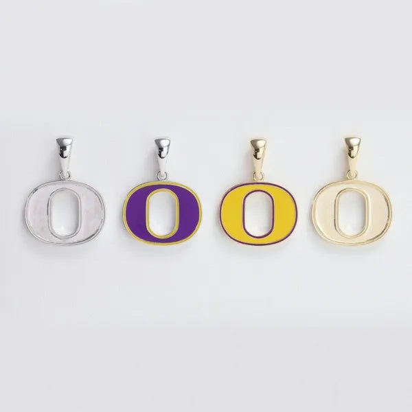 Statement piece of the “O” jewelry line titled “The Senior” in 14kt Gold Plating. 4-step enameling process that keeps the colors strong from Freshman year through Senior year and beyond.