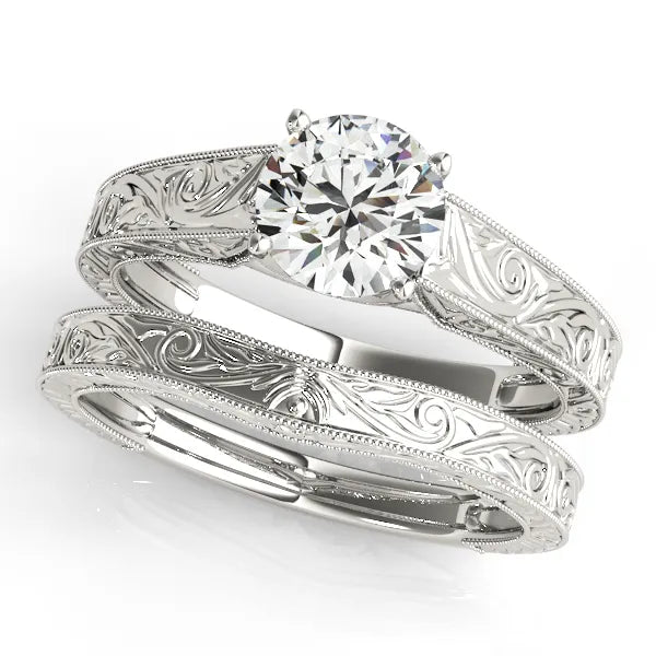 1.00ctw Engraved Diamond Engagement Ring – 14kt