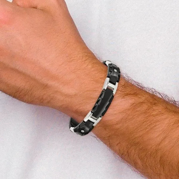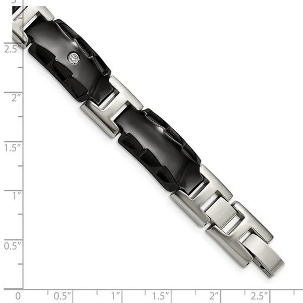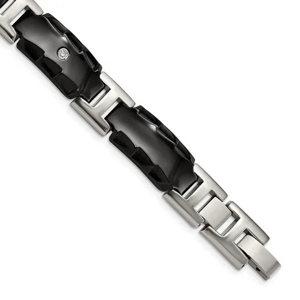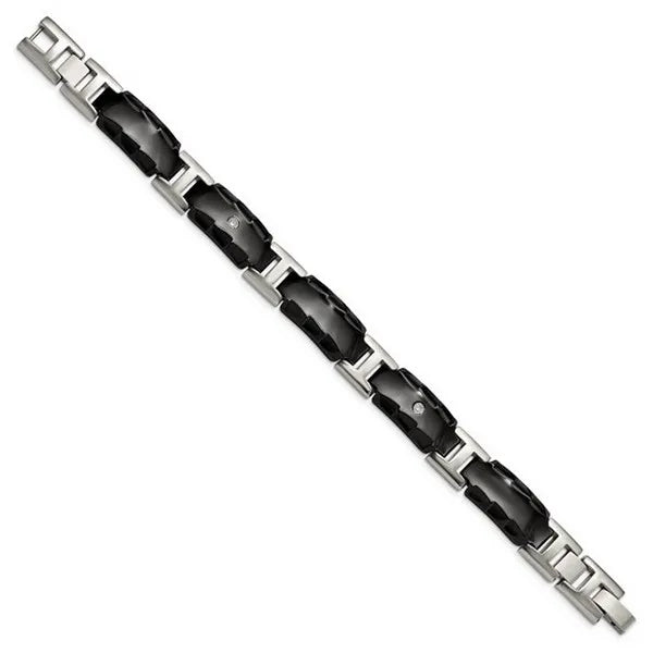Edward Mirell Black Ti with Faceted Edges and .12ctw Dia Bracelet
