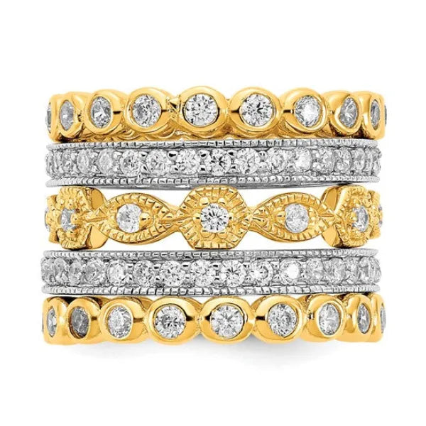 Cheryl M Sterling Silver Rhodium and Gold-plated Brilliant-cut CZ 5 Piece Eternity Band Ring Set