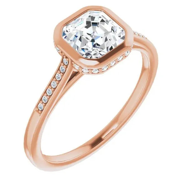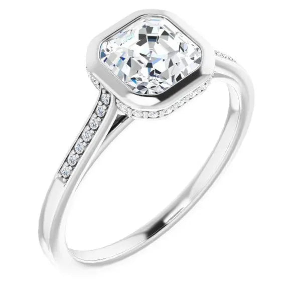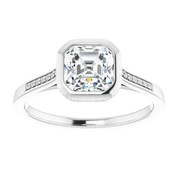 Bezel Set Asscher Diamond Accent Engagement Ring Mounting