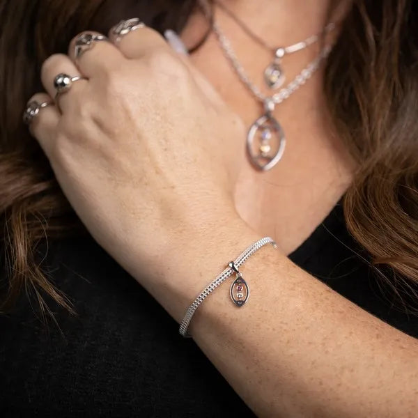The enhancer bail opens and closes so it can attach securely to any chain or bracelet.