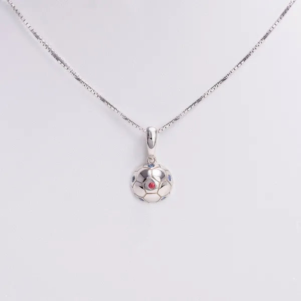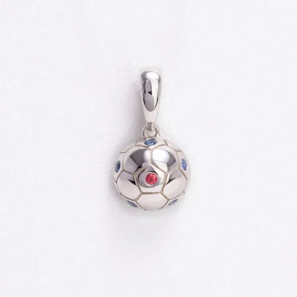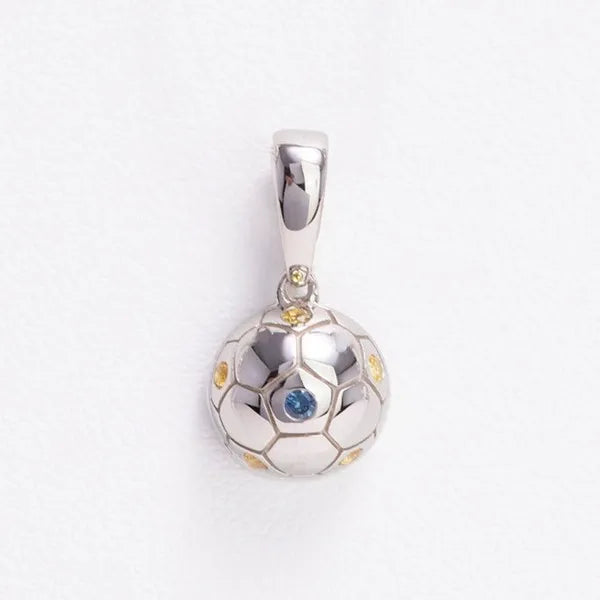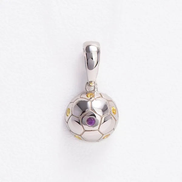 Soccer Ball Jewelry by AVID crafted in rhodium-plated sterling silver and flush-set colored gemstones. The enhancer bail opens and closes so it can attach securely to any chain or bracelet.